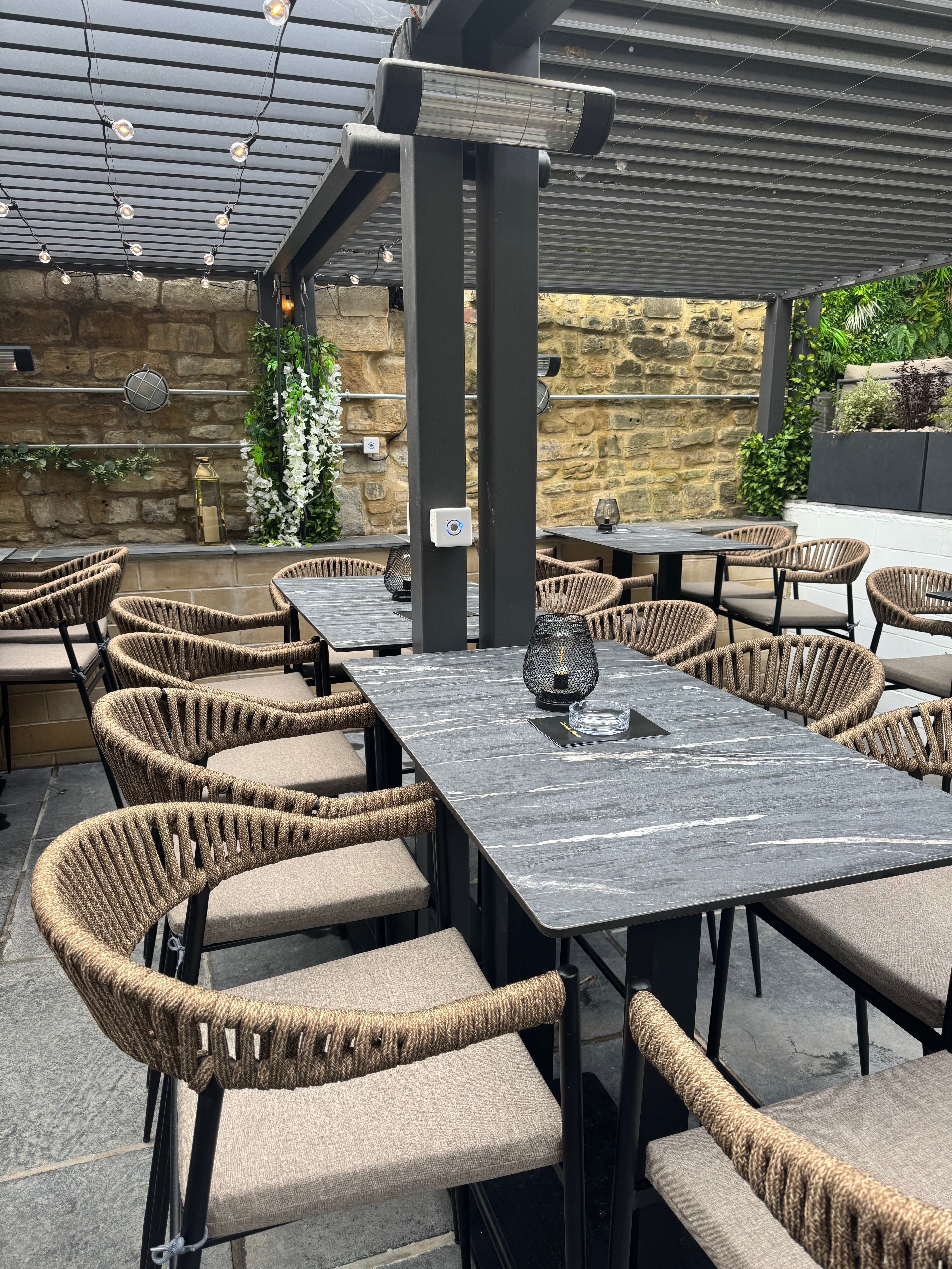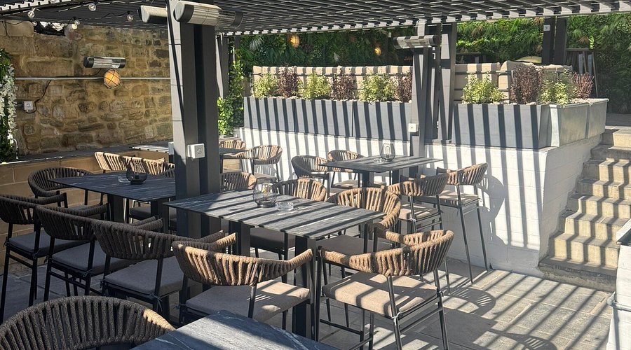 Se7en Bath, a casual dining restaurant focusing on steaks cooked over a somerset grill, and drinks in a stylish space both outside and inside.