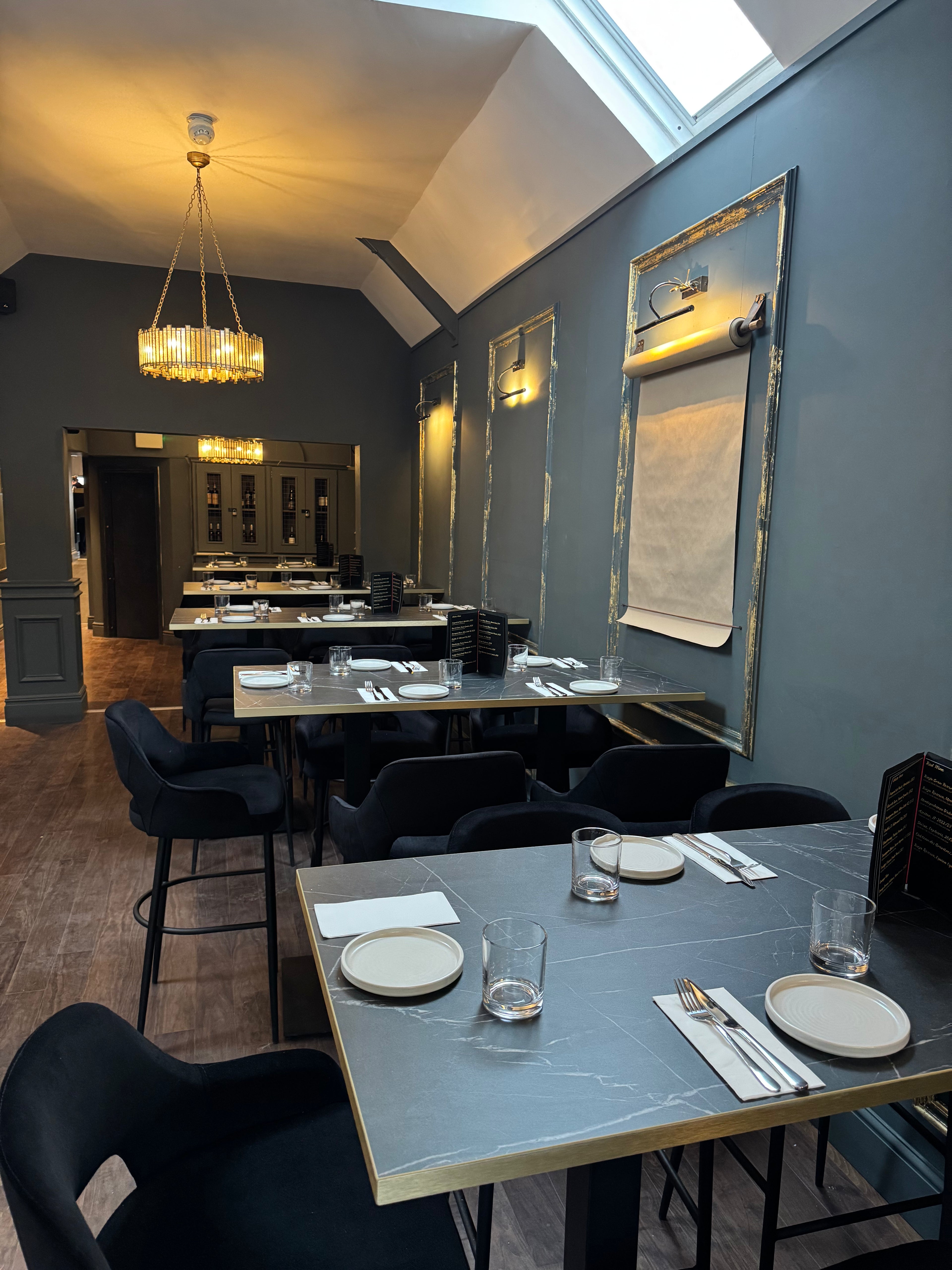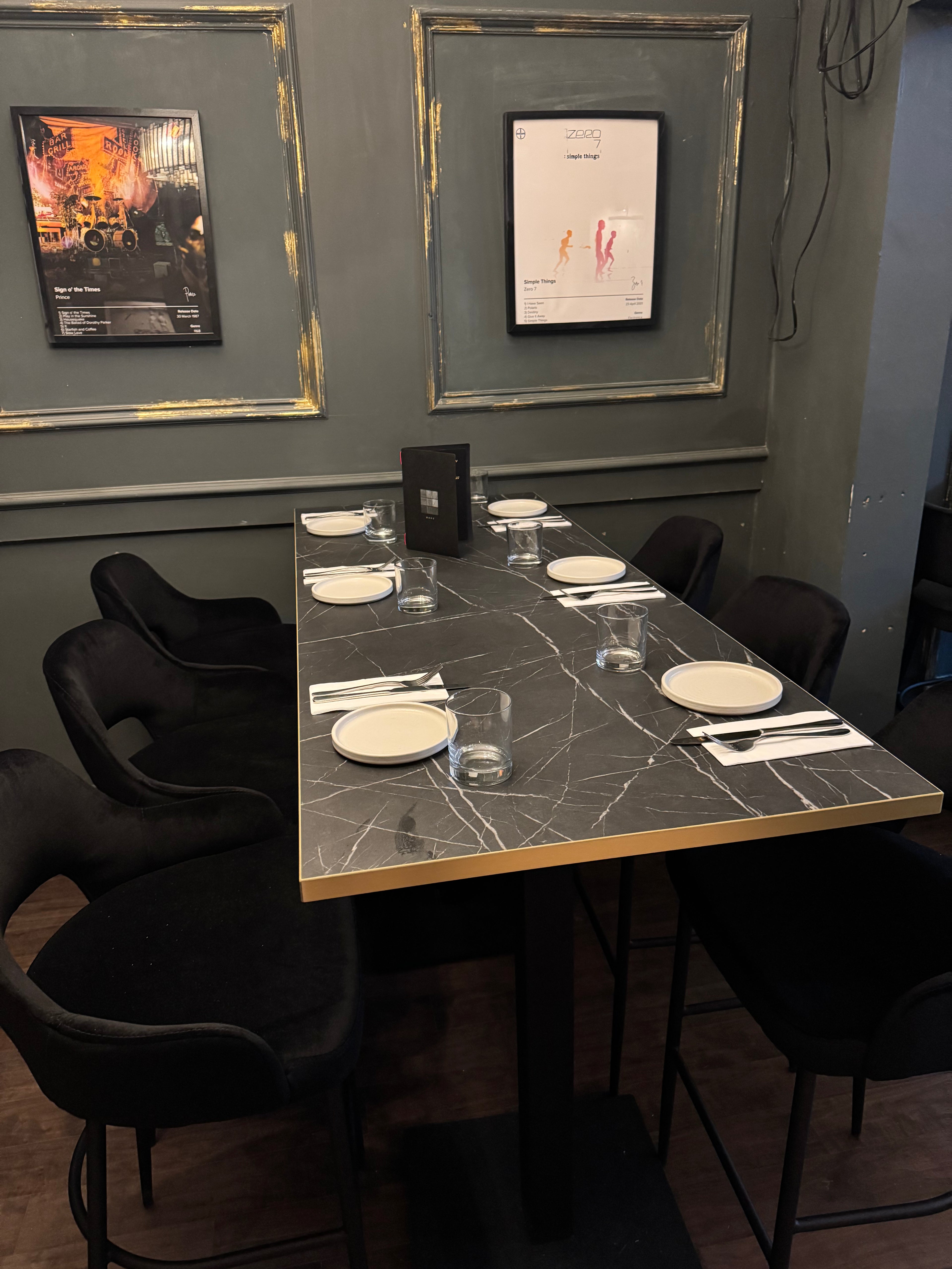 The main dining space utilised our Kelly Bar Stool, which the client requested the stools be upholstered in black velvet, which went with the overall style of the restaurant. Bar-height tables were also supplied with a marble-effect finish and brass surrounds.